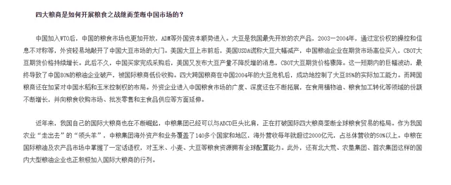 全世界做粮食生意的国度和粮商那么多,老爷子说过!